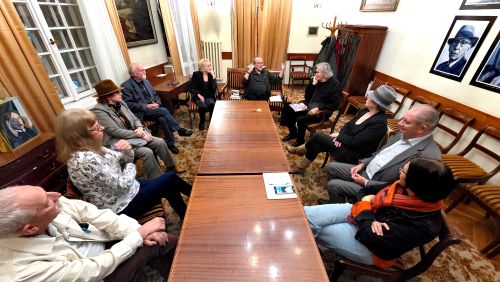 Oboje aktorzy dzielili się swoimi doświadczeniami z pracy nad tymi ciekawymi rolami. W dyskusji wzięli udział obecni, zainteresowani Witkacym przybysze, a wśród nich pan Przemysław Pawlak, autor najnowszej, arcyciekawej biografii Witkacego, wydanej przez wydawnictwo Iskry. Na zakończenie niespodziankę wszystkim sprawiła Joanna Tumiłowicz, artystka-plastyczka, która zaprezentowała trzy skrzyneczki po winie.