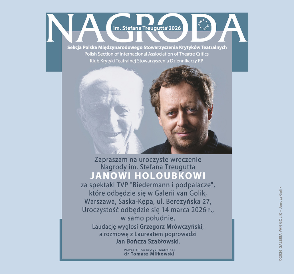 Klub organizuje to spotkanie z okazji uroczystego wręczenia Nagrody im. Stefana Treugutta 2025, którą Jan Holoubek otrzymał za spektakl telewizyjny „Biedermann i podpalacze”. Laudację na cześć Laureata wygłosi członek Kapituły Nagrody, Grzegorz Mrówczyński, a rozmowę z Janem Holoubkiem prowadzić będzie członek Kapituły, Jan Bończa Szabłowski. Serdecznie zapraszamy!